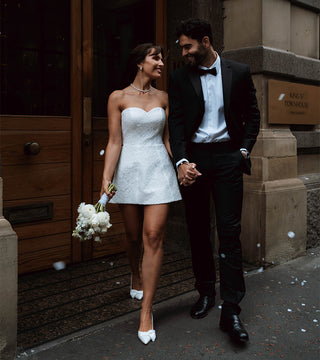 Charlotte Mills is the perfect place for every bride to say ‘I Do’ throughout your wedding journey. Our signature bridal shoes are handcrafted with love, designed to be treasured forever - and worn again and again. Alongside our iconic footwear, discover our collection of modern bridal mini dresses, created with thoughtful structure and hidden support to help you look and feel incredible. Designed to be part of every moment leading up to your ‘I Do.’