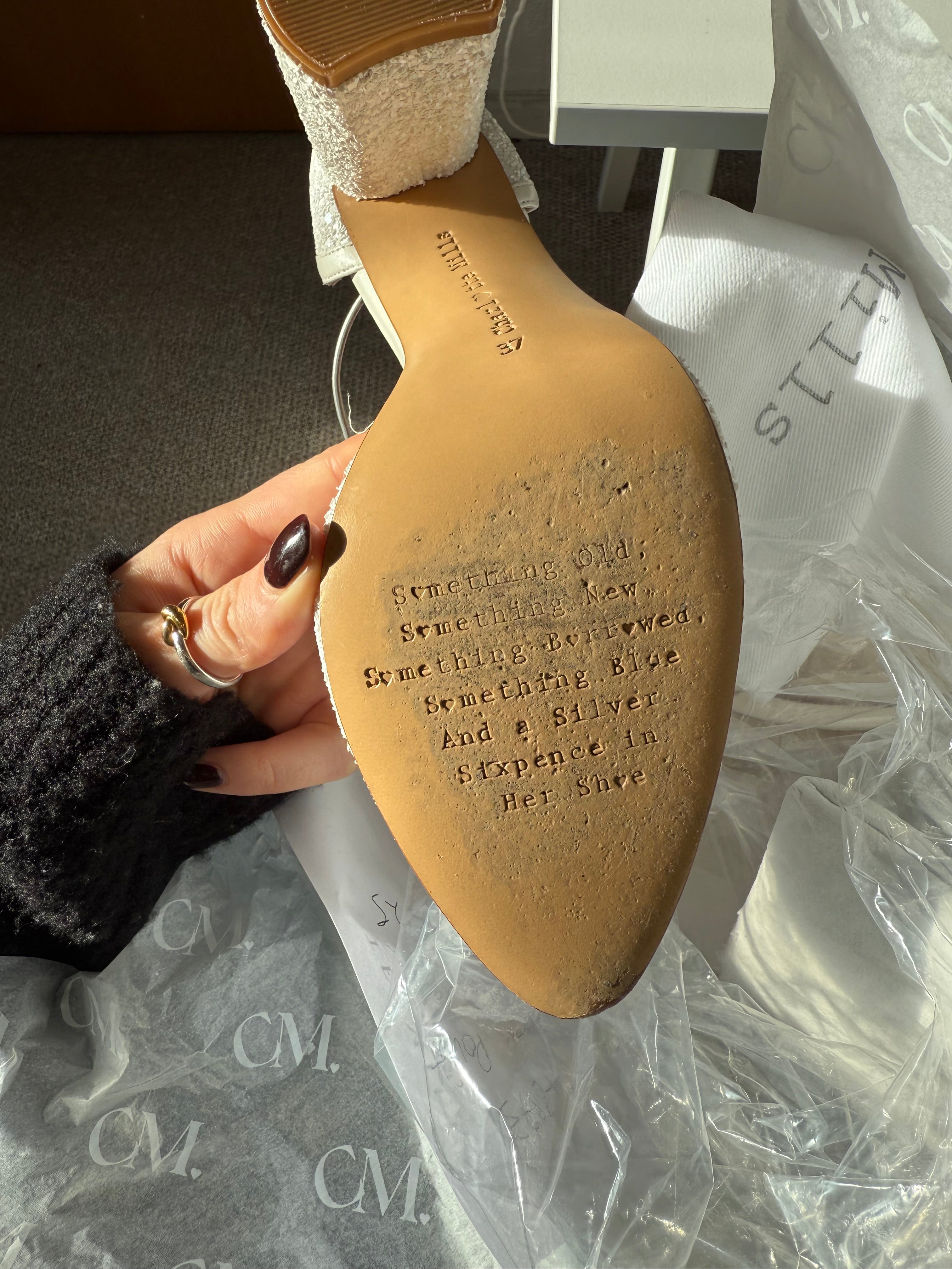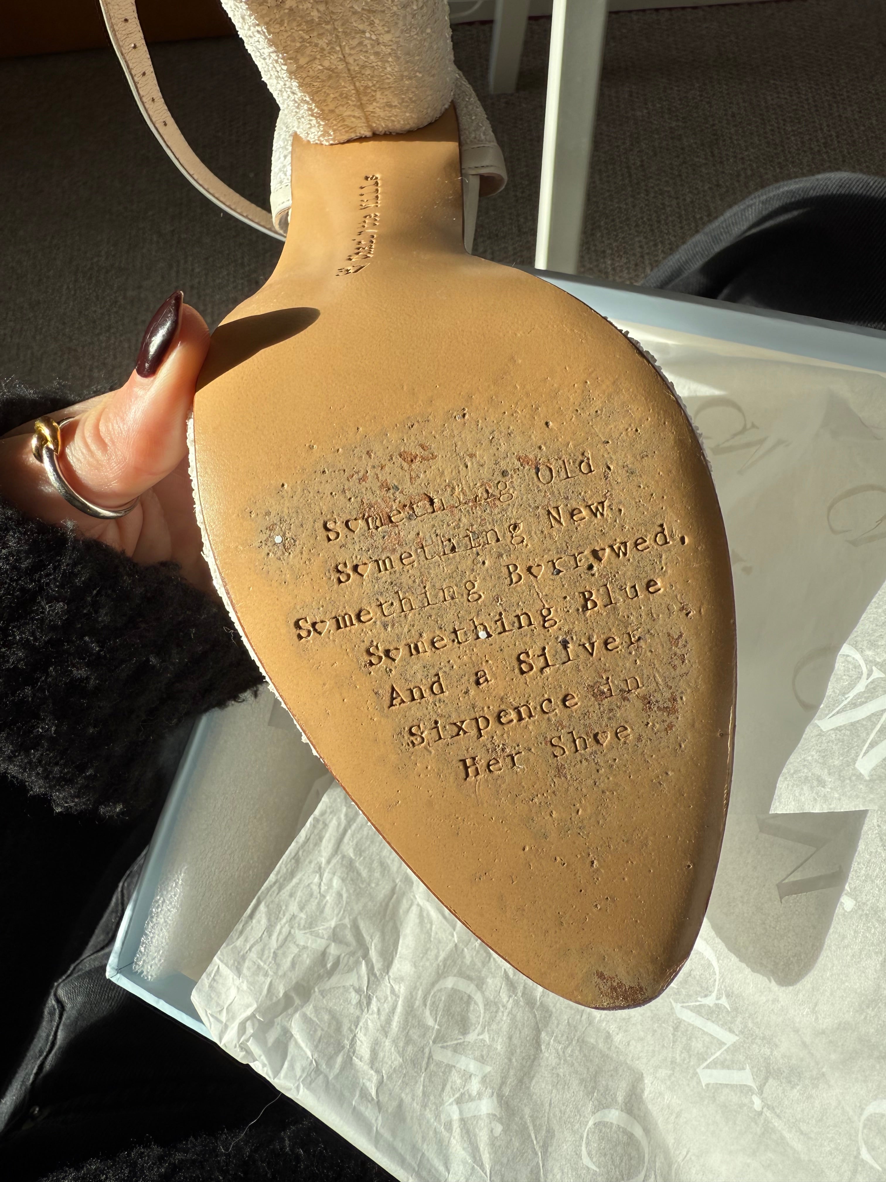 Each pair of our wedding shoes has an original silver sixpence. This is your something old.