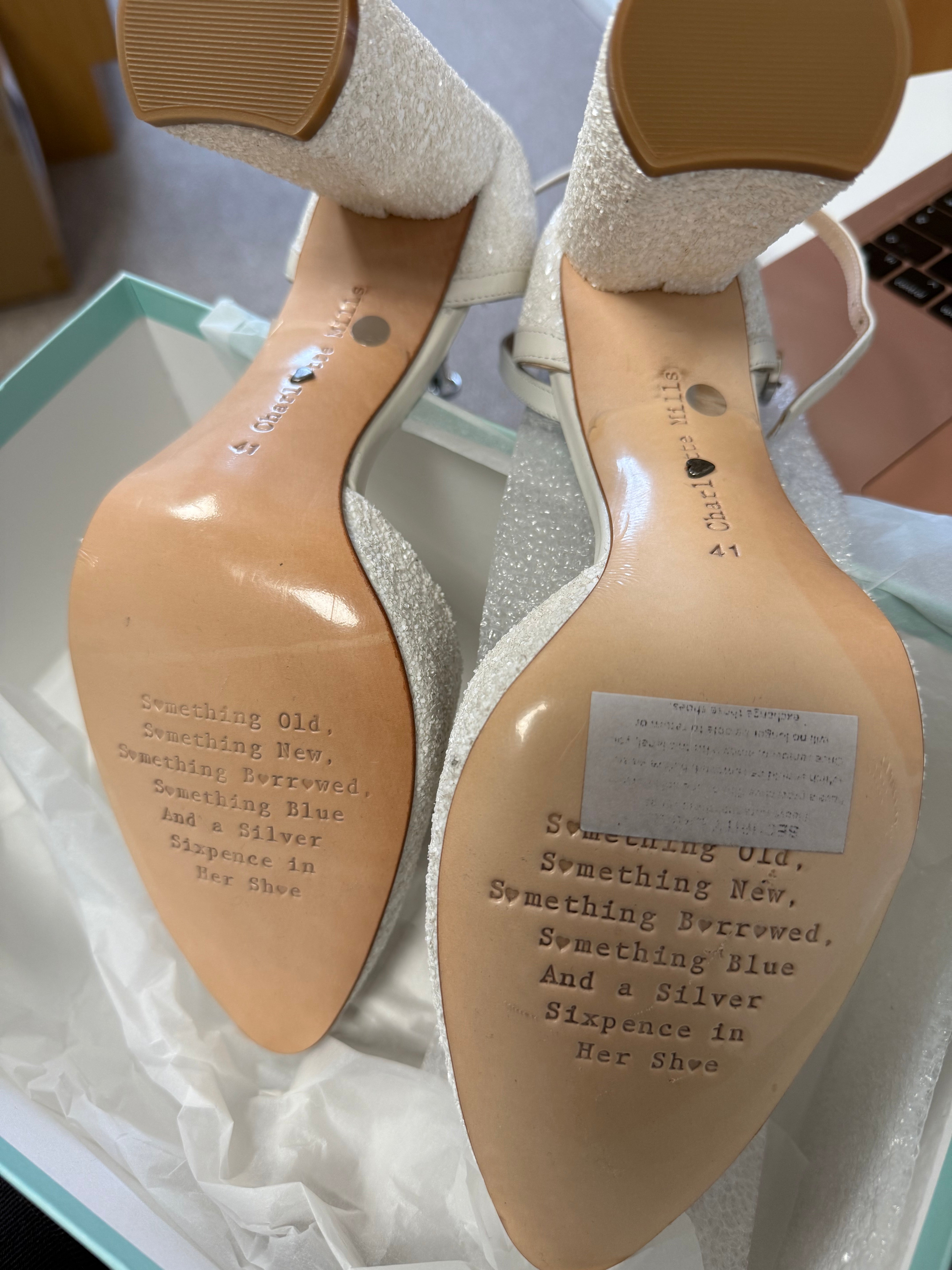 • Higher 10cm block heel for an extra lift, with an almond toe and supportive ankle strap. Customise your look with our optional Organza Ribbon Straps.