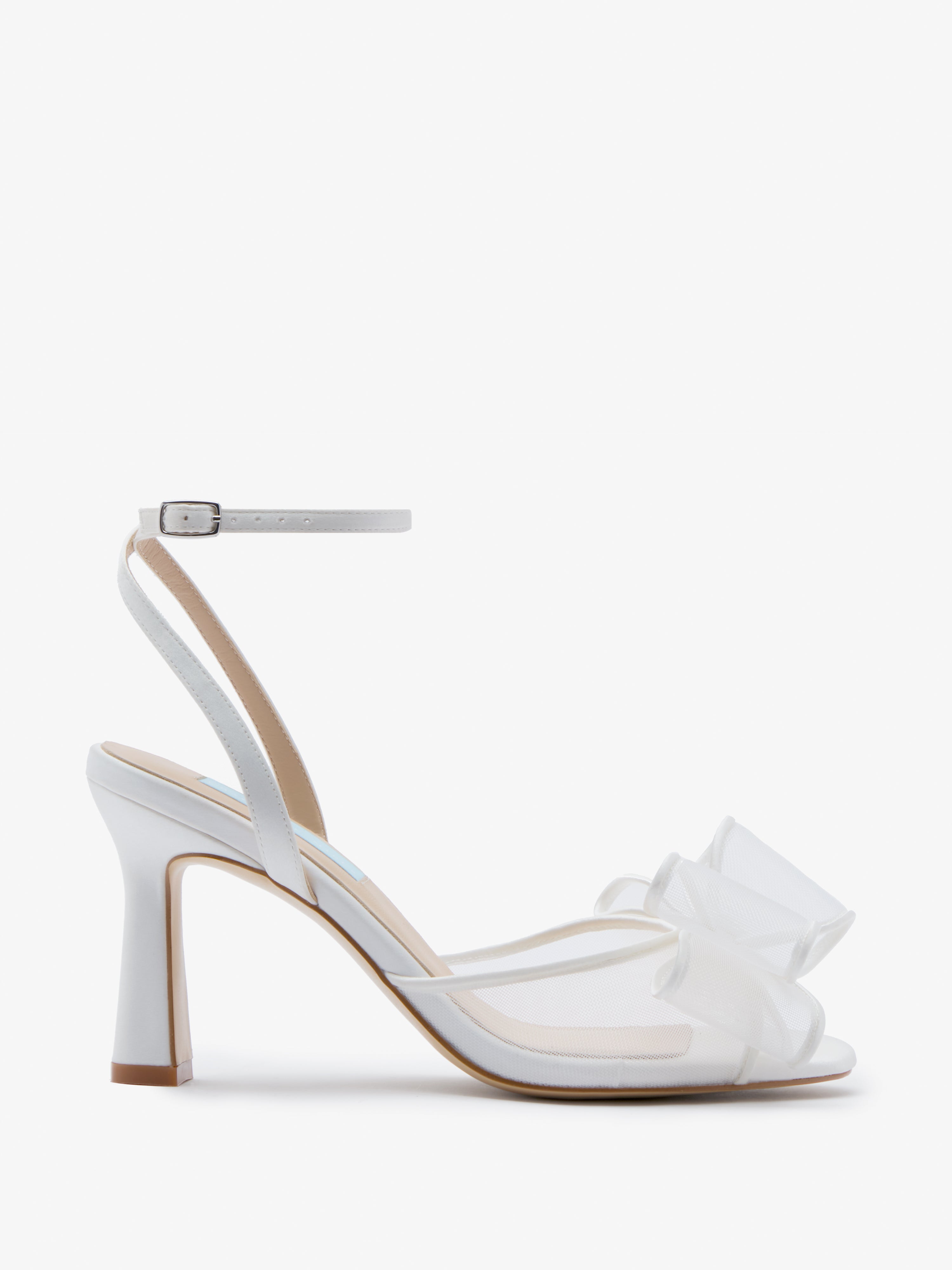Our Ottie bridal shoes combine a high heel with an open peep-toe silhouette for a modern, elevated look. The sheer mesh design is finished with a statement bow across the vamp. Designed with comfort in mind, they feature a padded insole, alongside our signature sixpence hidden inside and our CM rhyme delicately etched along the soles.
