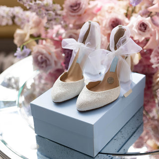 After launching our first block heel wedding shoe in 2015 we soon realised this is not only stylish, but also super practical for your wedding day. No sinking in the the grass or worrying about cobbles and uneven surfaces, block heel wedding shoes are perfect for tackling these different surfaces and really comfortable too. Our range now consists predominantly of block heels as this is what most of our Brides are looking for.