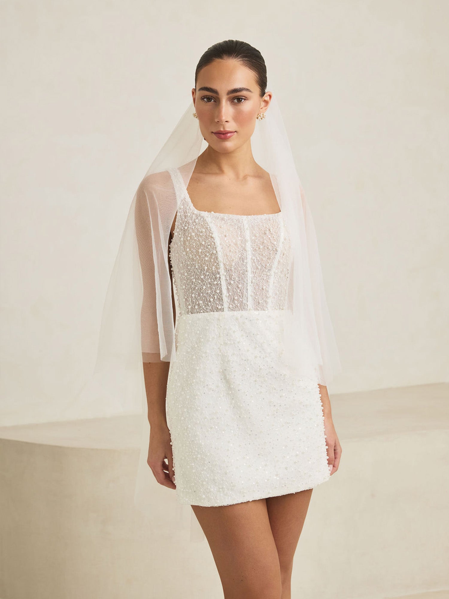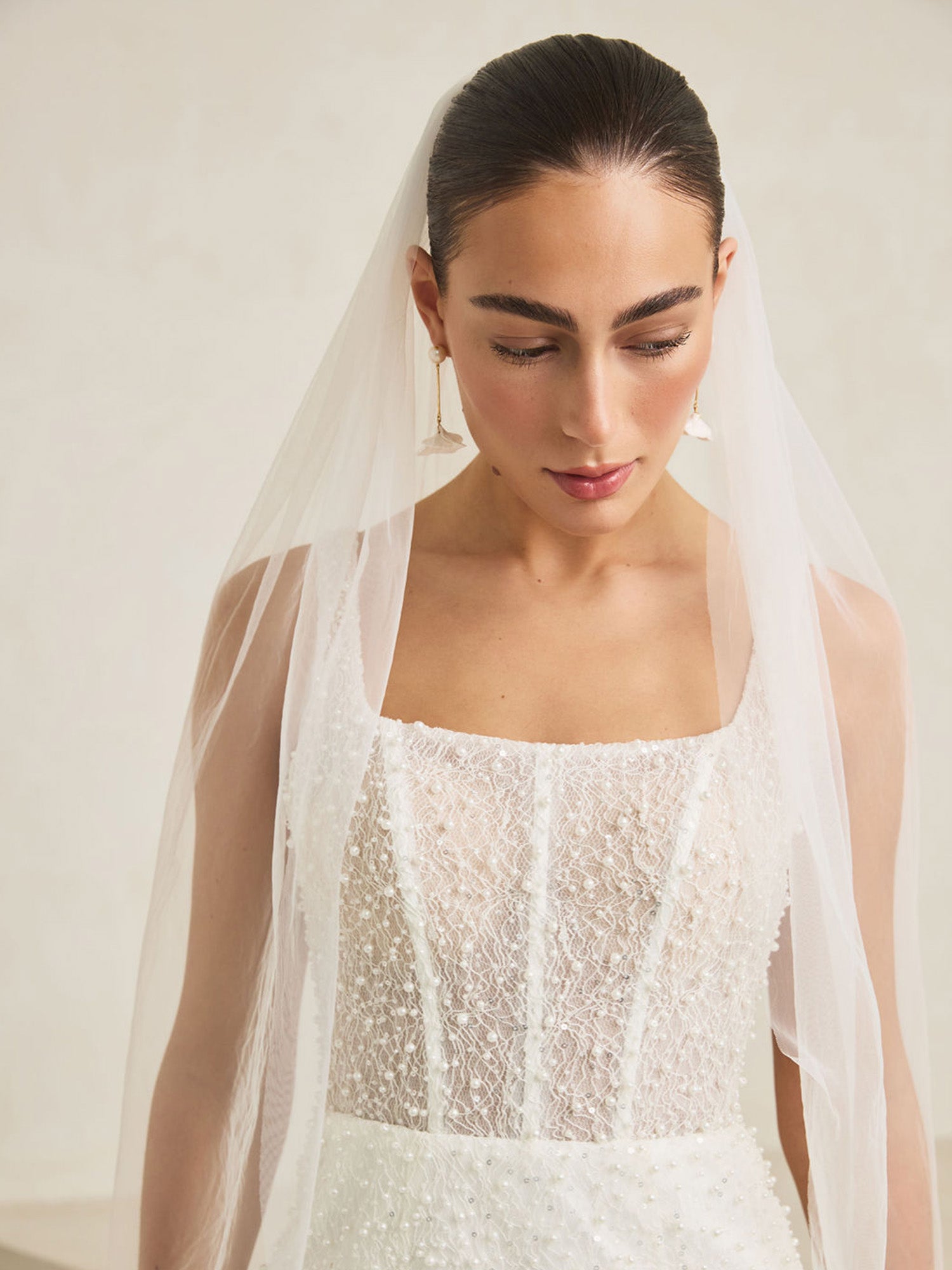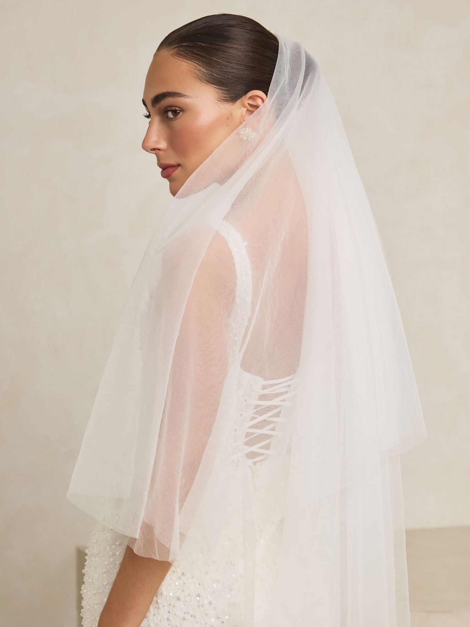 Ivory Plain Tulle Fingertip Length Veil With Blusher