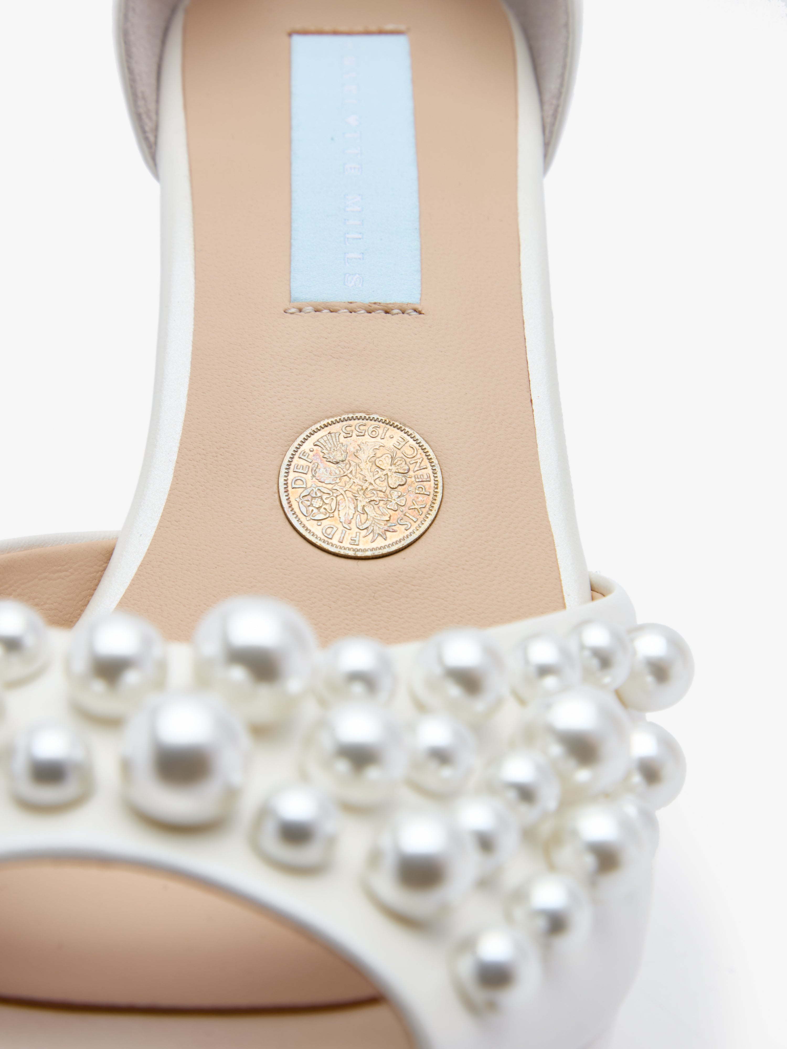 Ivory lustre leather bridal platform sandals with pearl embellished vamp